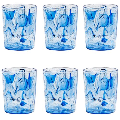 S/6 Aegean Swirl Acrylic 12.4oz Glasses, Blue
