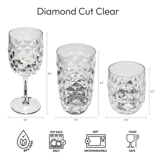 S/6 Diamond Cut Acrylic Drinking Glasses