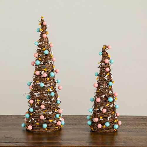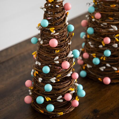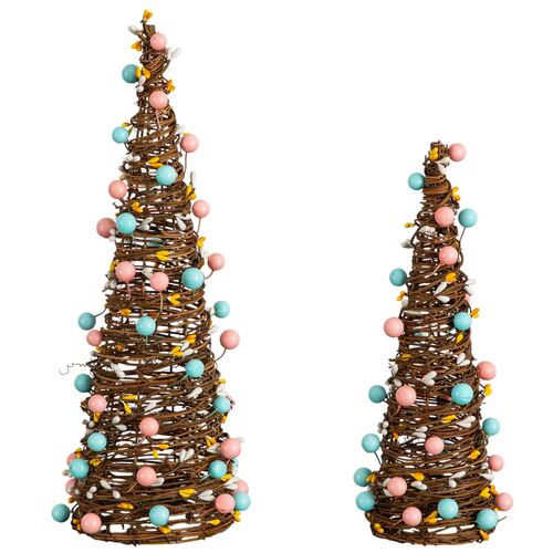 S/2 Easter Rattan Cone Trees with Pastel Eggs
