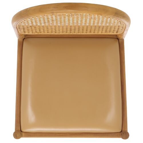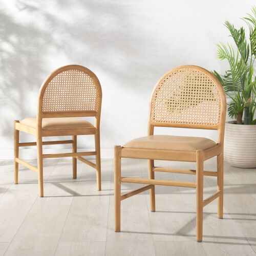 S/2 Erynor Rattan Leather Seat Dining Side Chairs