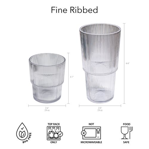 S/6 Fine Ribbed Indoor/Outdoor Acrylic Drinking Glasses