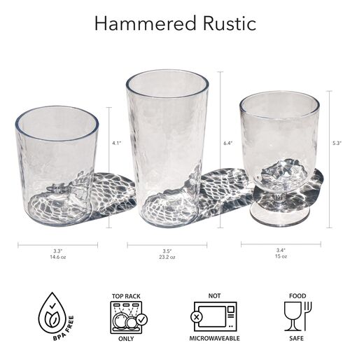 S/6 Hammered Rustic Acrylic Drinking Glasses