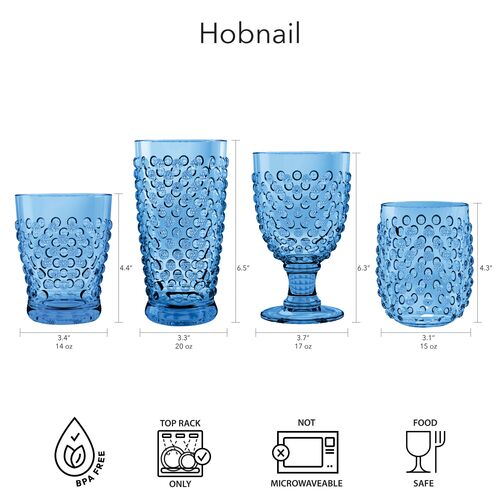 S/6 Hobnail Acrylic Stemless Wine Glasses