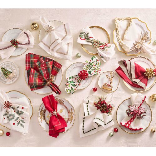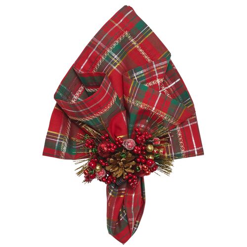 S/4 Holiday Threads Napkin, Red/Green/Gold