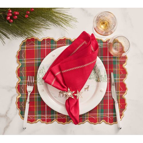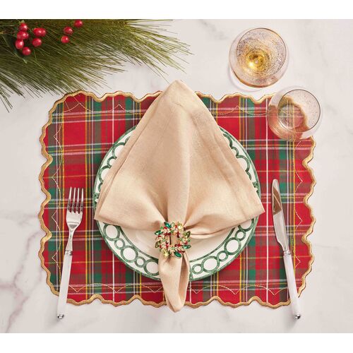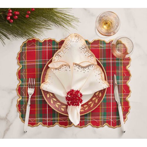 S/4 Holiday Threads Placemat, Red/Green/Gold