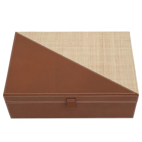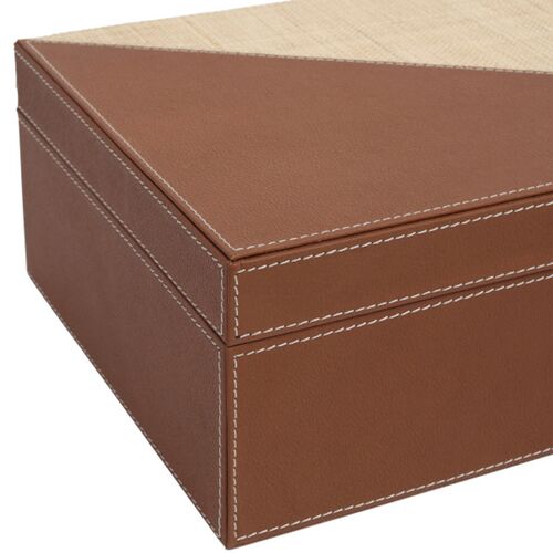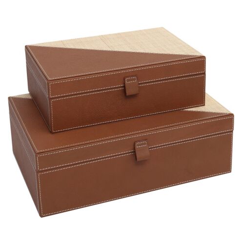S/2 Leather & Raffia Boxes, Brown