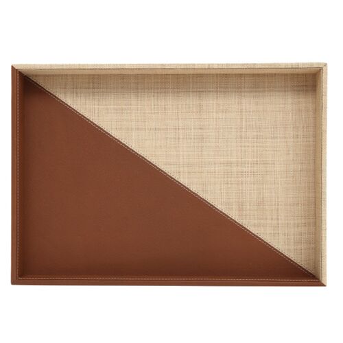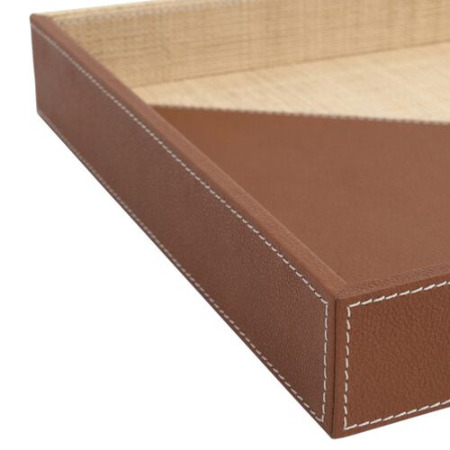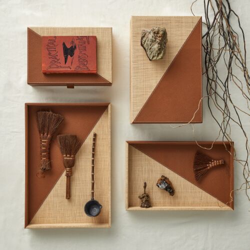 S/2 Leather & Raffia Trays, Brown