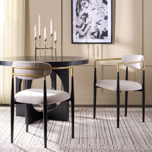 S/2 Lucen Dining Arm Chairs, Black/Gold/Dove Grey