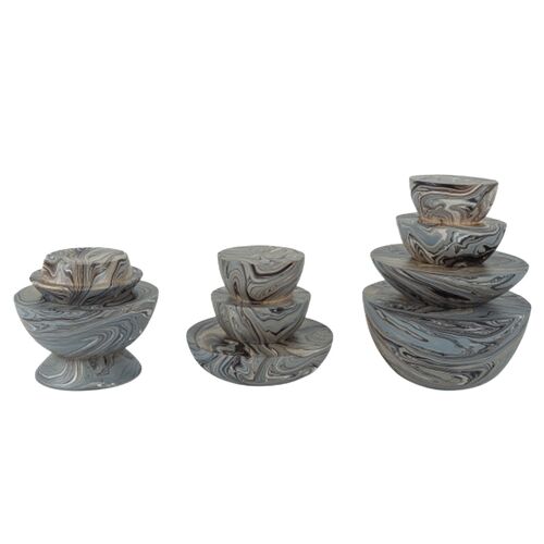 S/3 Marbleized Stacking Boxes, Gray