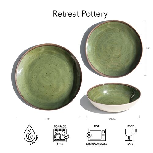 S/6 Retreat Pottery Indoor/Outdoor Melamine Dinner Plates, Green
