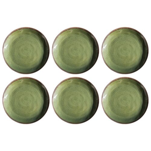 S/6 Retreat Pottery Melamine Dinner Plates, Green, 10.5"