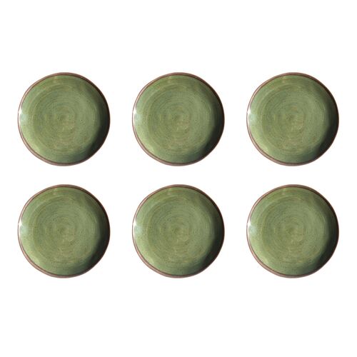 S/6 Retreat Pottery Melamine Salad Plates, Green