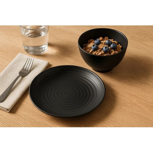 S/8 Ribbed Coupe Wheat Dinner Plates, Black