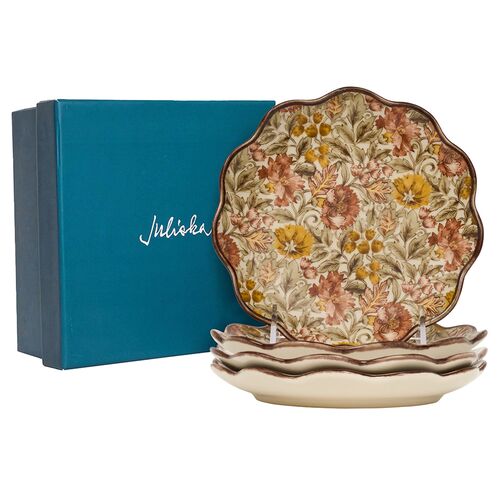 S/4 Scalloped Willa Cocktail Plates, Amber