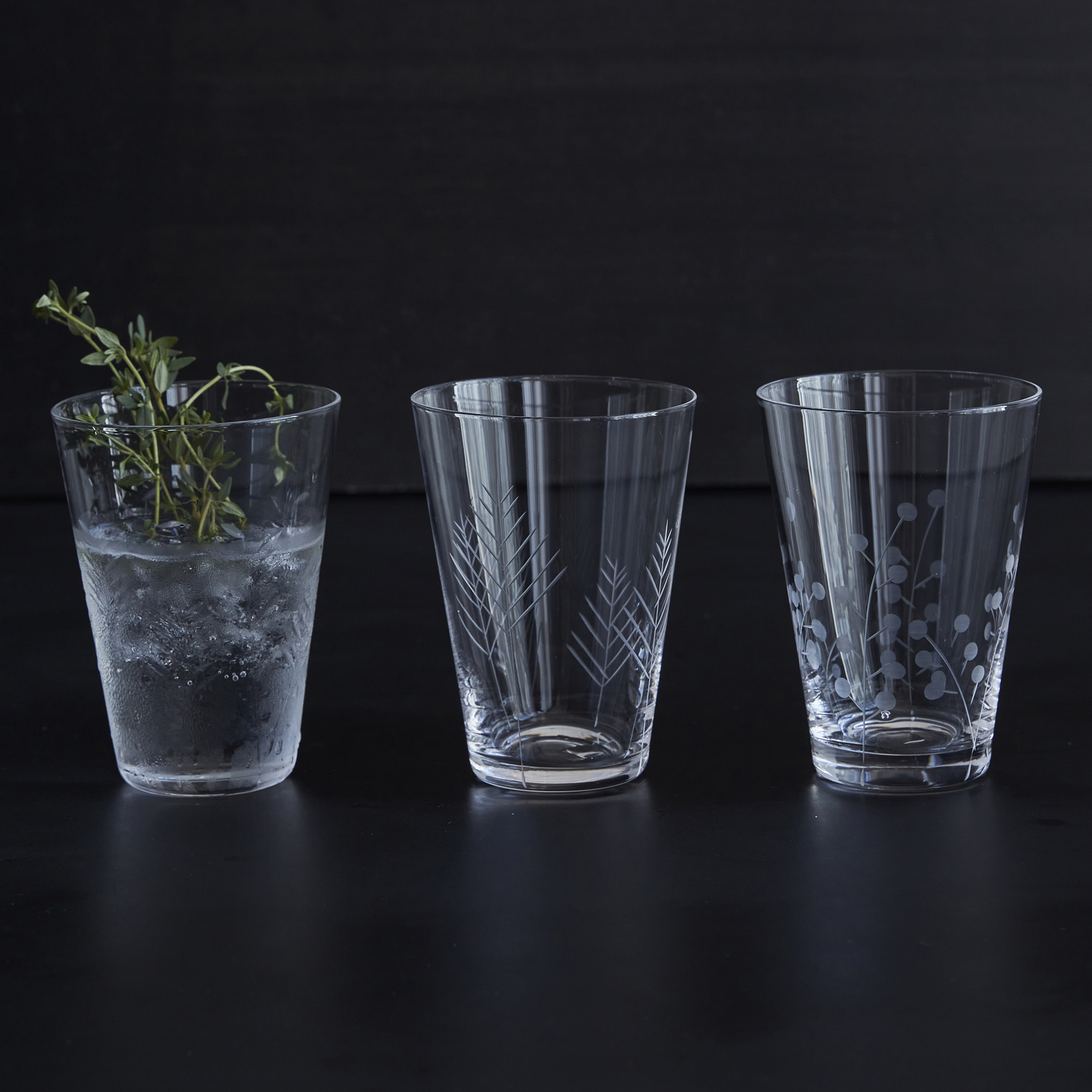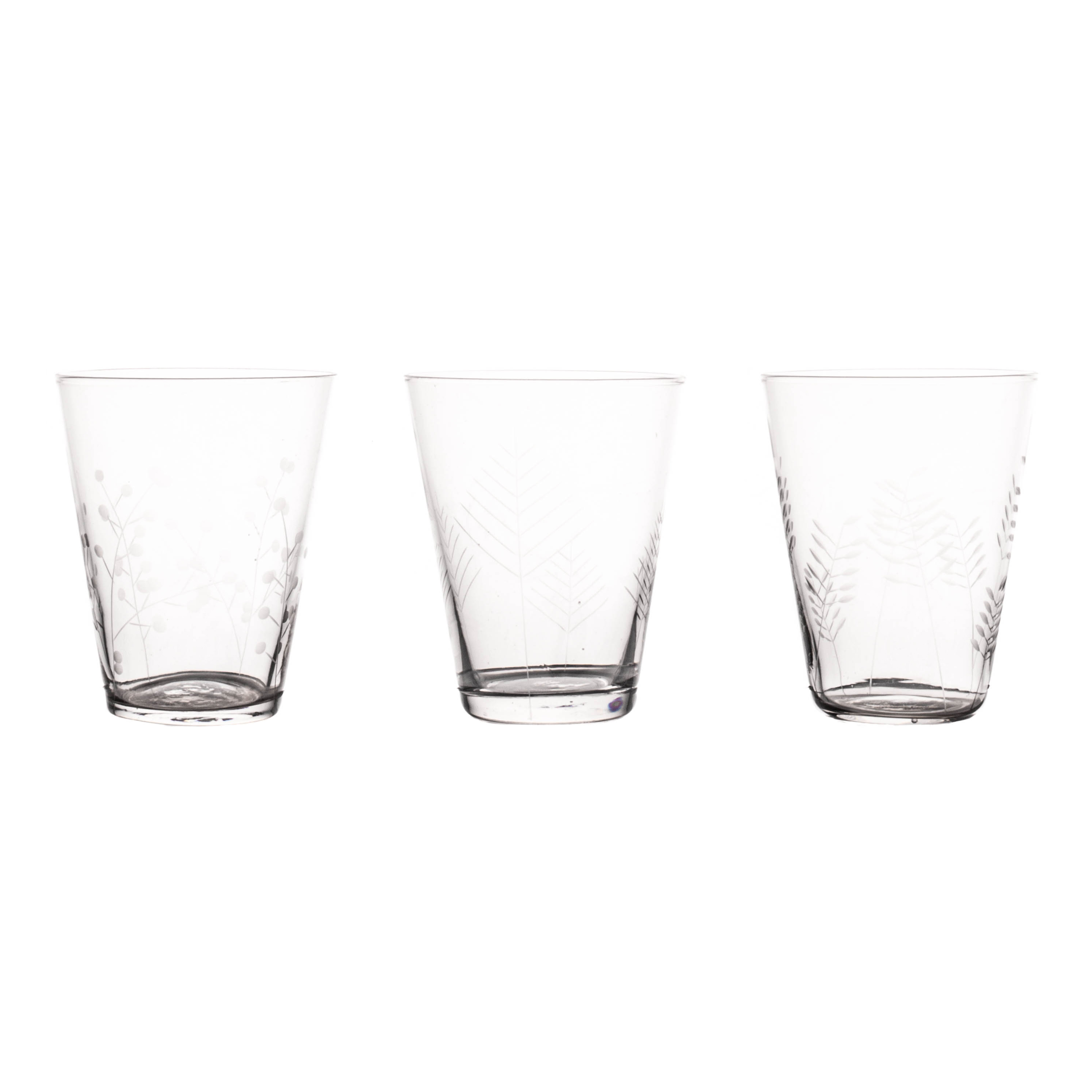 S/6 Sienna Botanical Etched Wine Glasses