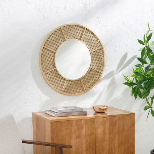 Sansa Round Cane Wall Mirror, Khaki
