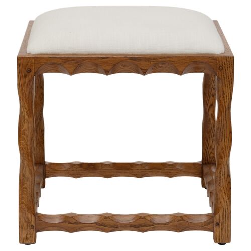 Scallop Linen Stool, Walnut/White