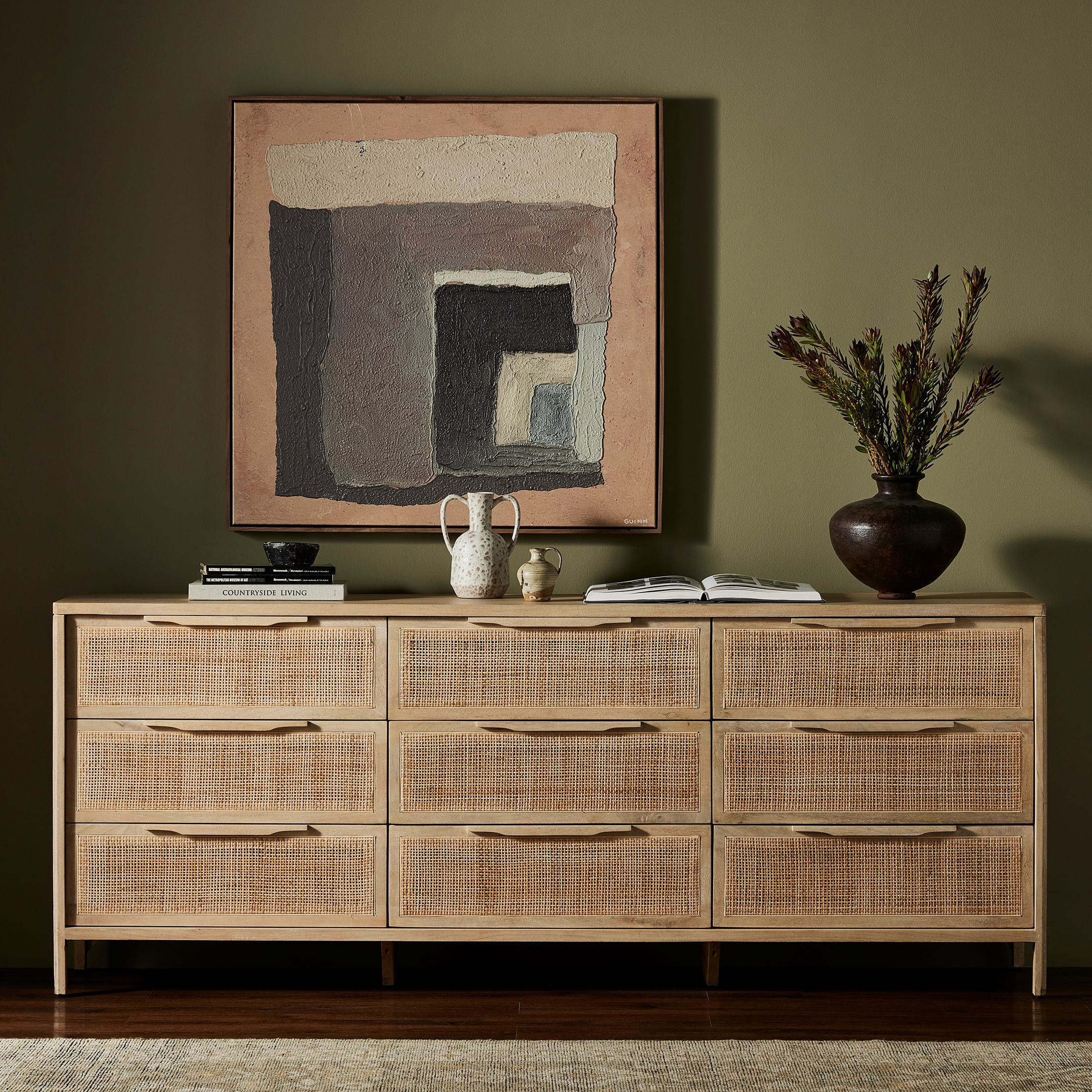 Selena Cane 9-Drawer Dresser, Natural Mango