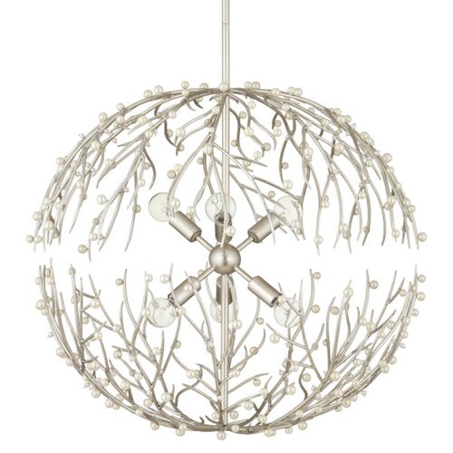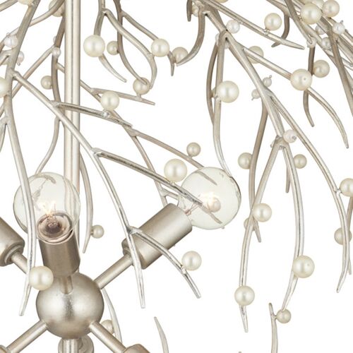 Shinju Pearl Orb Branch Chandelier, Contemporary Silver Leaf
