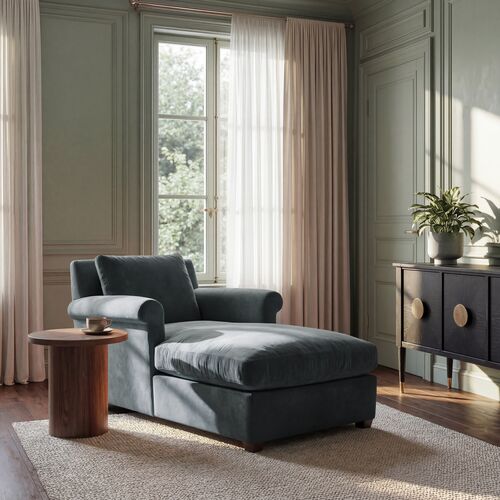 Sinclair Velvet Roll Arm Chaise