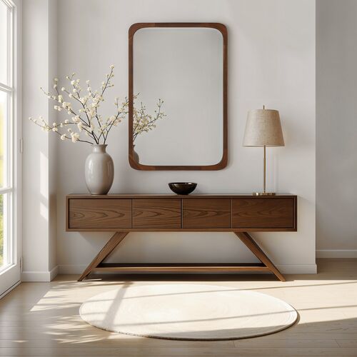 Mythrin Soft Rounded Wall Mirror, Walnut