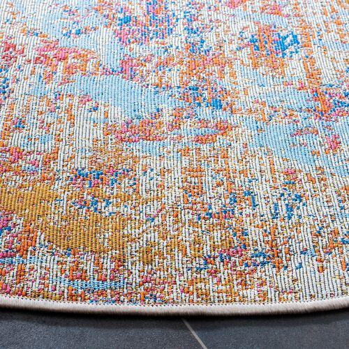 Slumner Outdoor Rug, Ivory/Light Blue