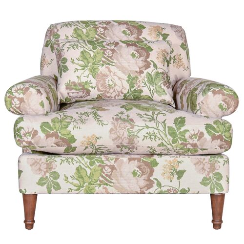 Smithson Floral Velvet Chair, Beth Green/Pink Crypton