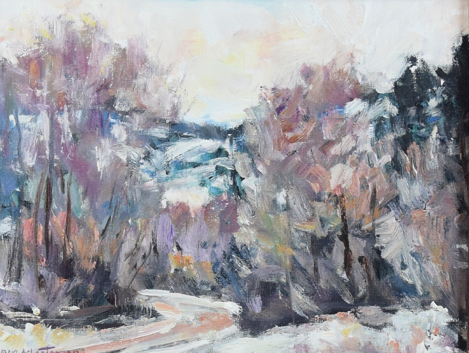 Snowy Impressionist Landscape Painting