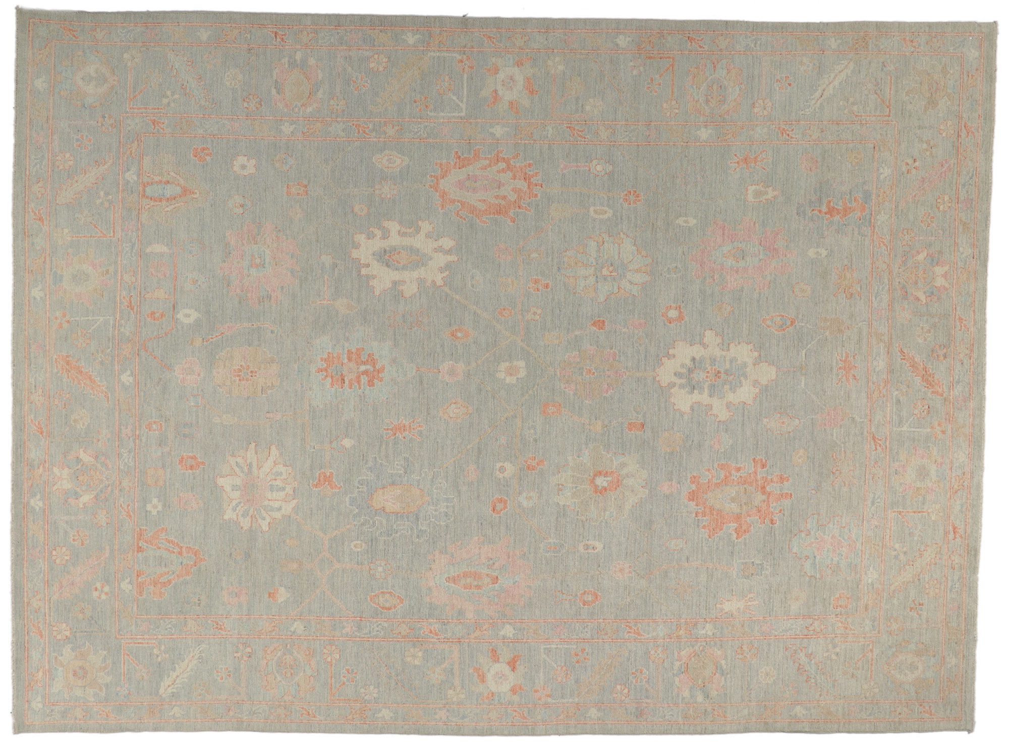 Soft Muted Pastel Oushak Rug, 8'10 x 12'