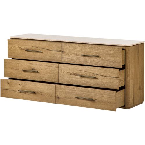 Sorin 6 Drawer Dresser, Worn Oak Veneer