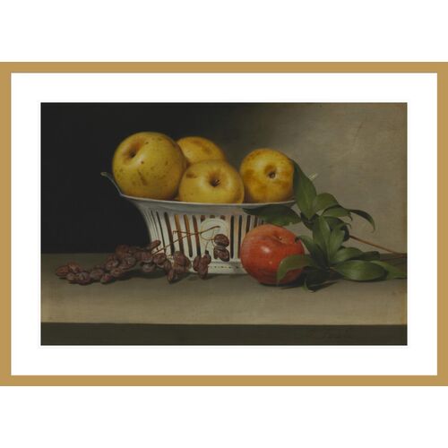 Still Life with Raisins Yellow & Red Apples in Porcelain Basket by Raphaelle Peale Print