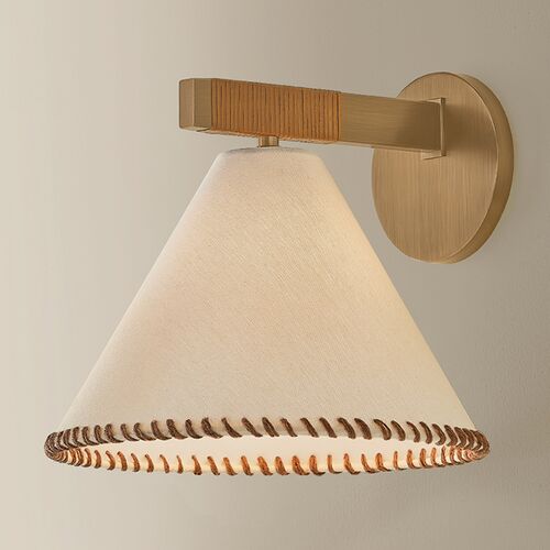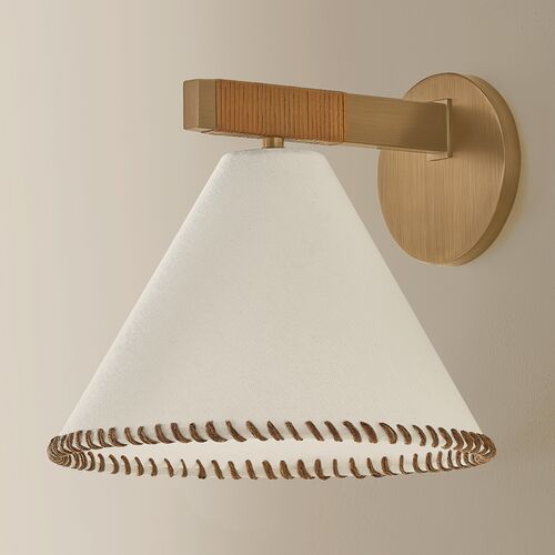 Stoney Whip-Stitch Wall Sconce, Natural Linen/Jute Wrap/Patina Brass