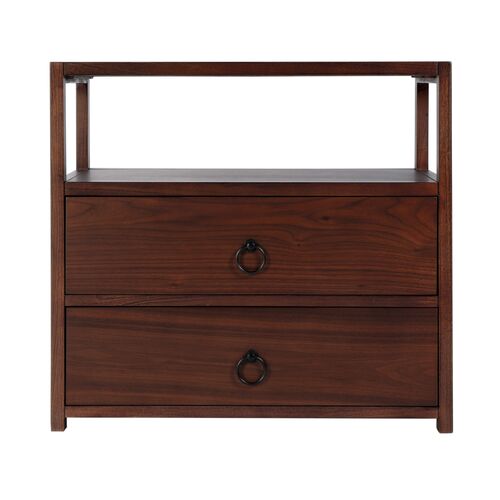 Cecilia 2-Drawer Wide Nightstand w/ Open Shelf