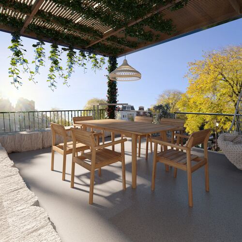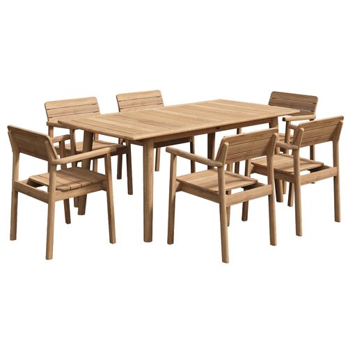 Juniper 7-Piece Outdoor Rectangular Teak Dining Set w/ Barrel Back Armchairs, Natural