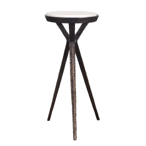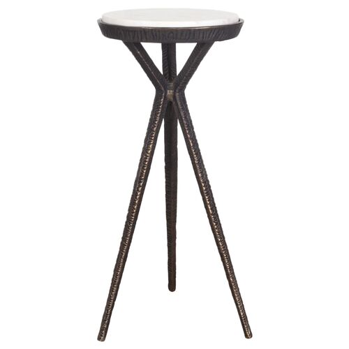 Marietta Marble Drink Table, Textured Iron/White