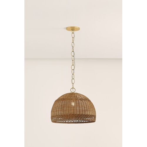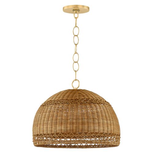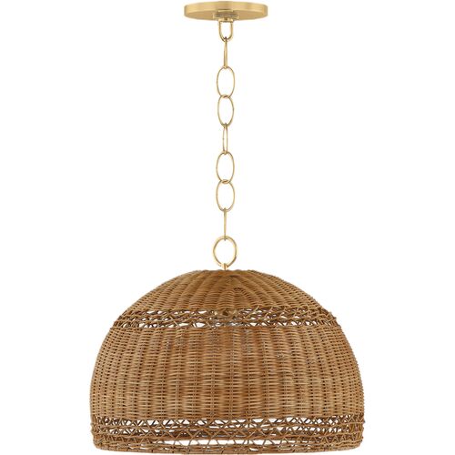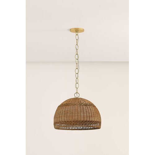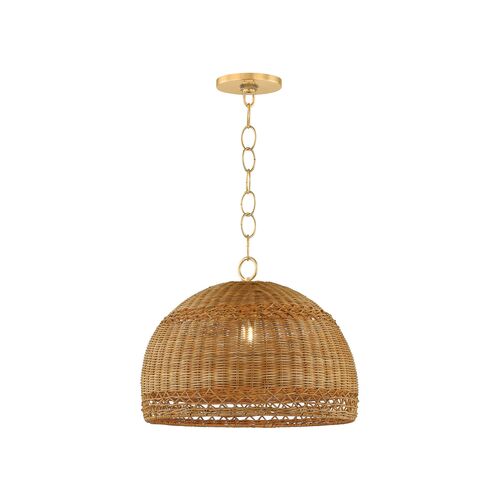 Orsten Pendant, Aged Brass/Light Natural Twisted Palm Leaves