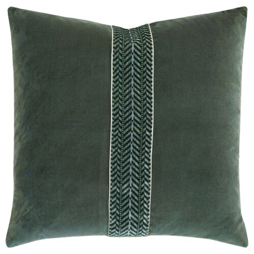 Theo 22x22 Chevron Border Pillow, Pine