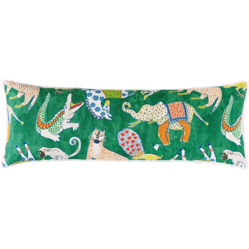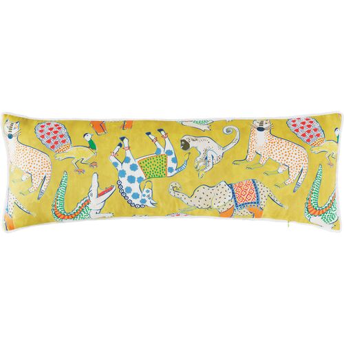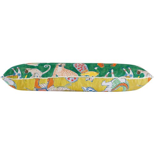 Tipu 13x36 Reversible Animal Long Lumbar Pillow, Green/Yellow