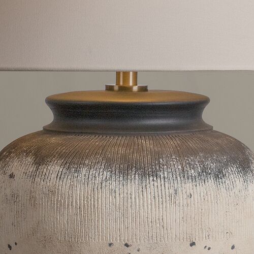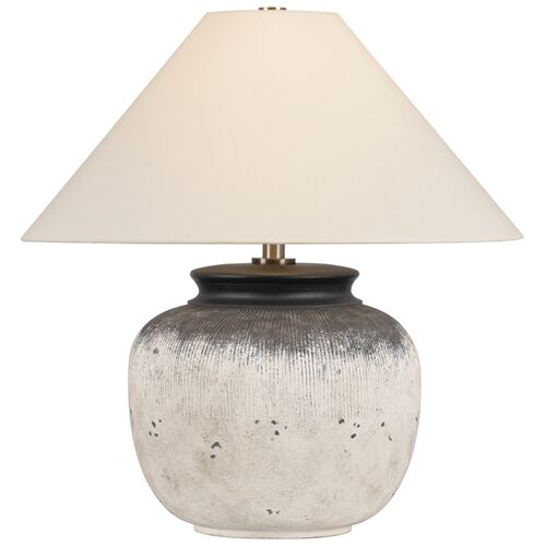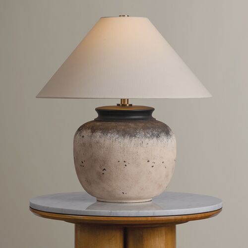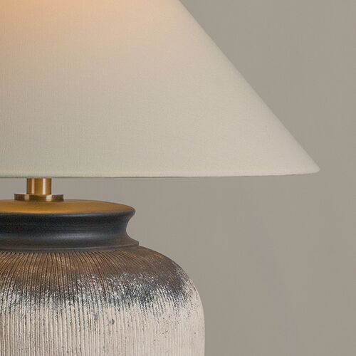 Unearthed Table Lamp, Ceramic Flamed White/Off White Linen