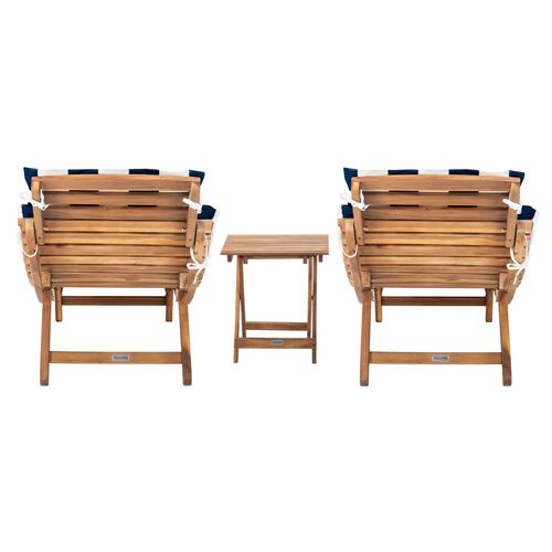 Uriah 3 Pc Outdoor Acacia Folding Chaise Lounge Set