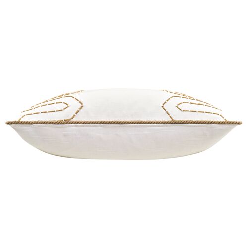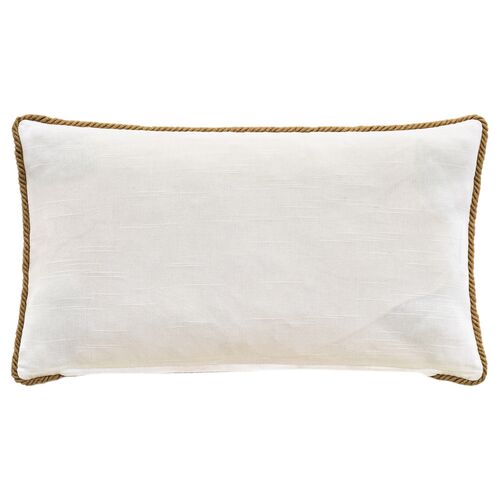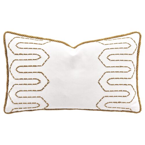 Valley 13x22 Hand Embroidered Lumbar Pillow, White/Gold