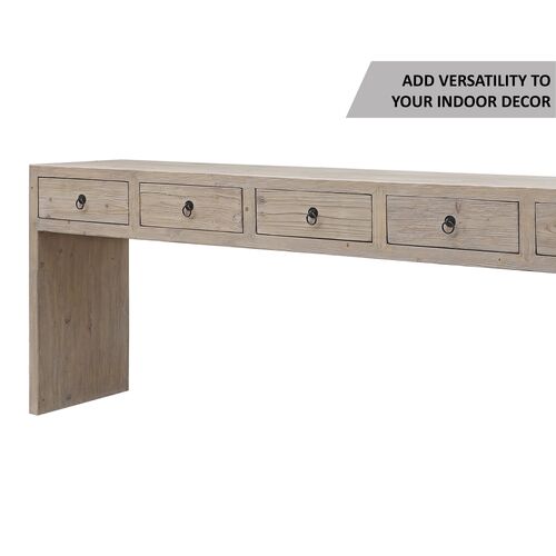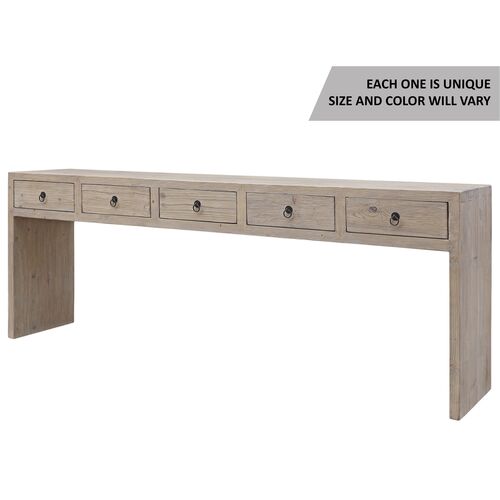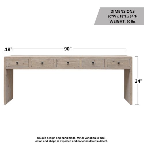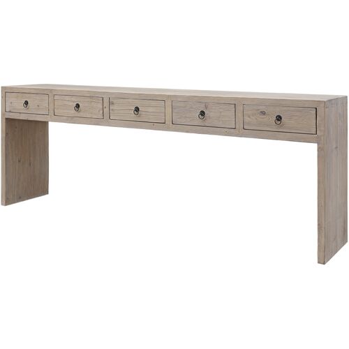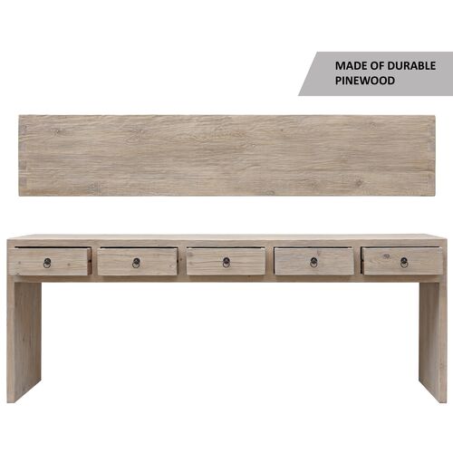 Vandra 5-Drawer Waterfall Console Table, Weathered Natural