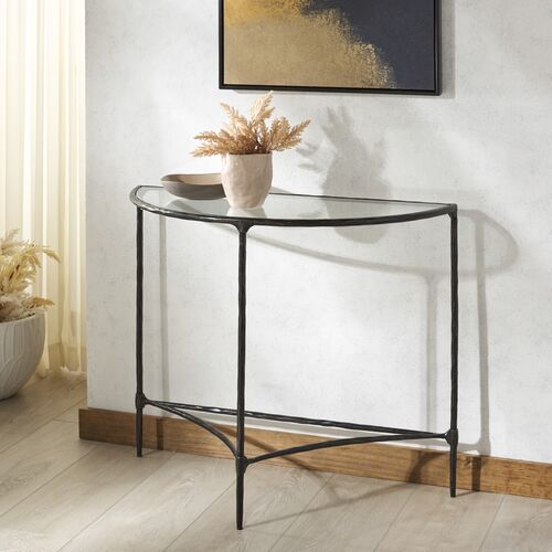 Venetia Half Moon Console, Black / Clear