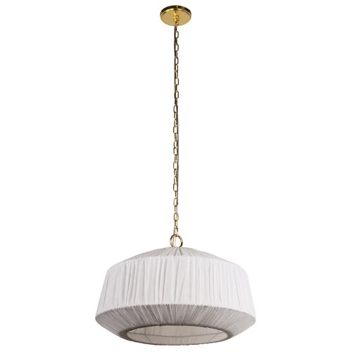 Sloane Linen Pendant, White/Aged Brass