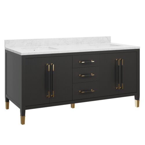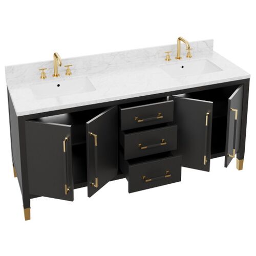 Verona 72 Inch Black Vanity with Rectangular Undermount Sink, Black