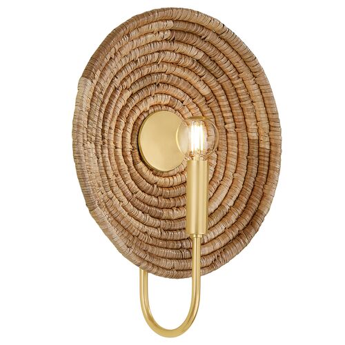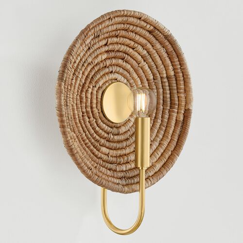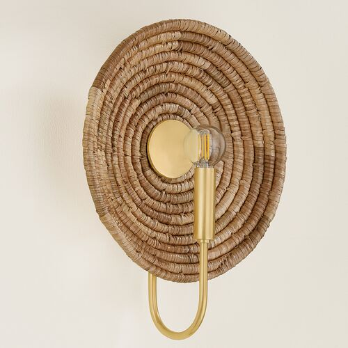 Vesna Wall Sconce, Aged Brass/Woven Natural Fiber
