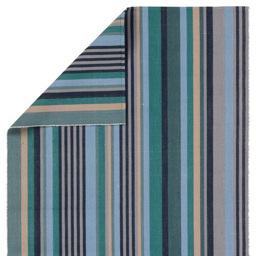 Vibe by Sergio Handmade Striped Teal/Blue Area Rug