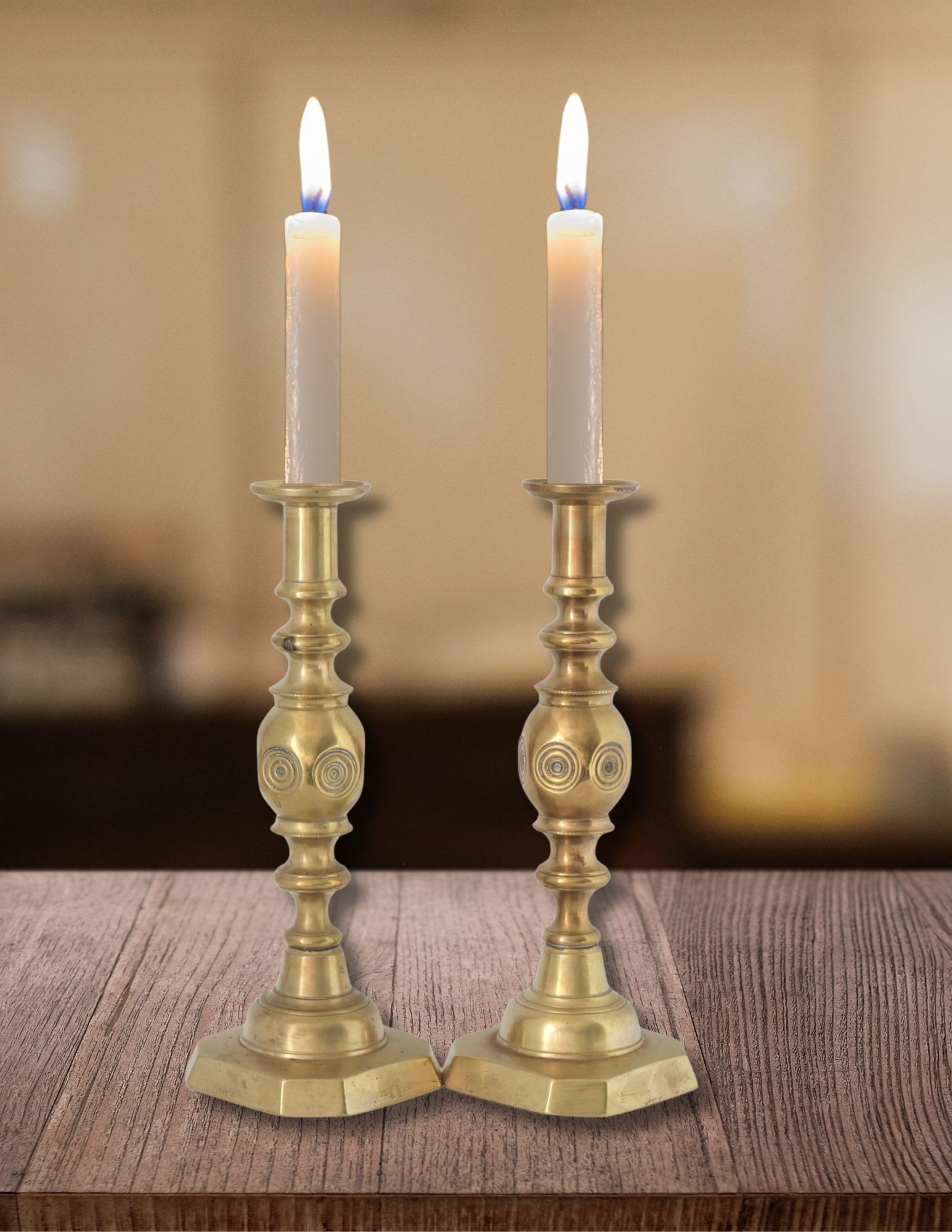 Victorian "Good Luck" Brass Candlesticks