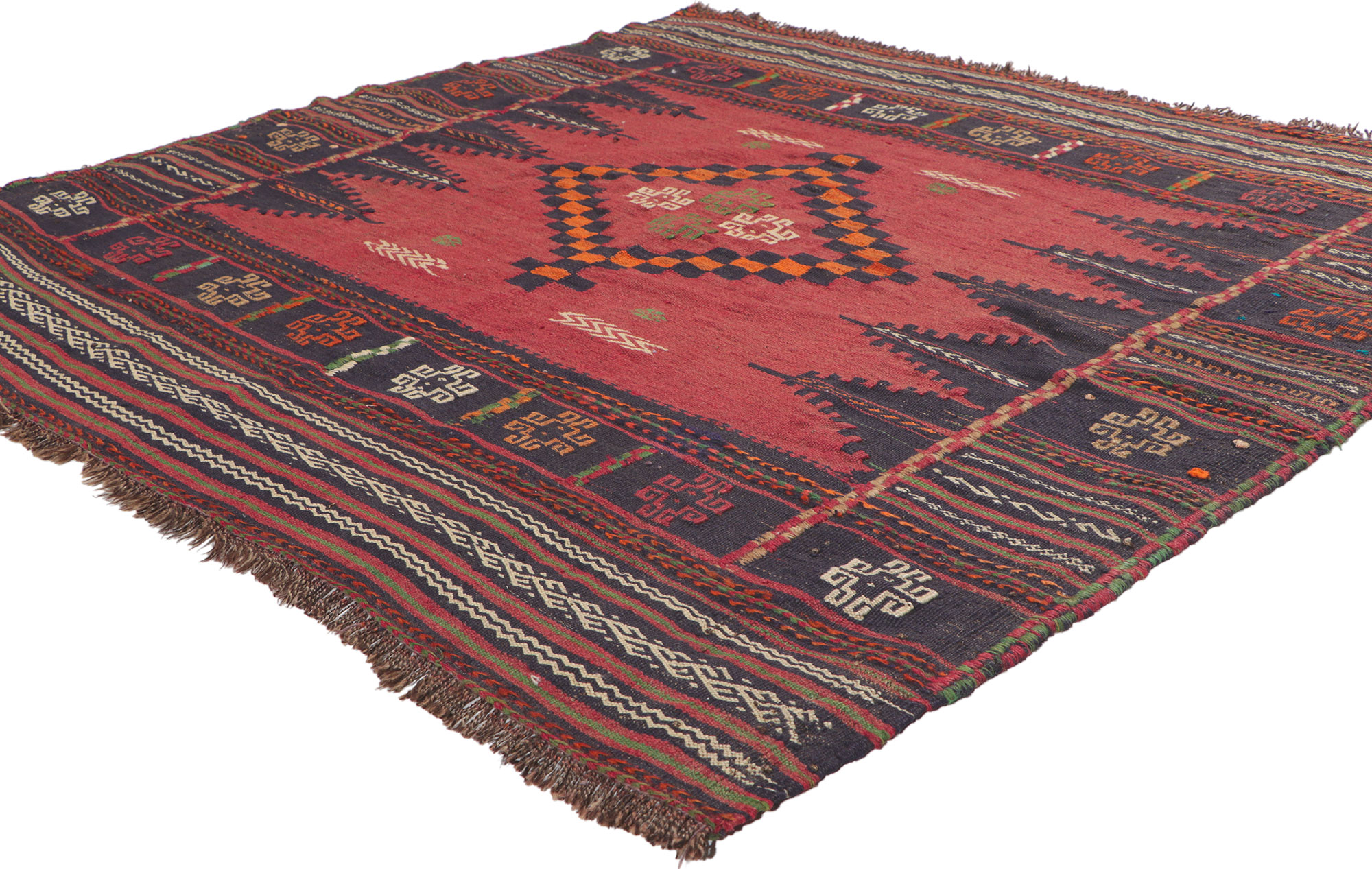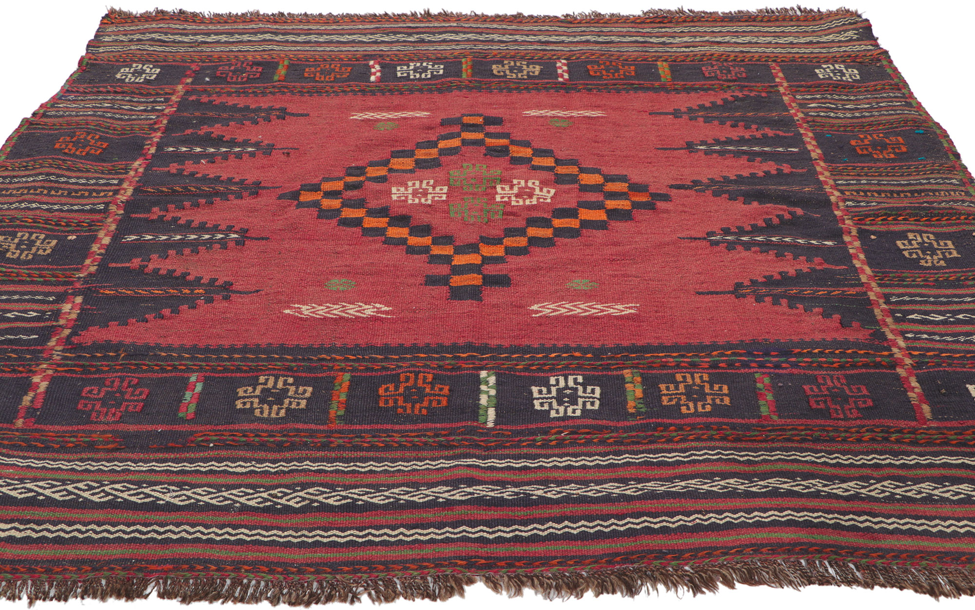 Vintage Afghan Kilim Rug, 4'6 x 4'4