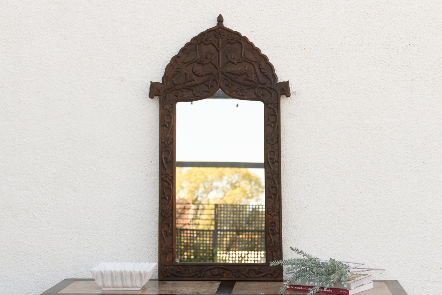 Vintage Carved Peacock & Floral Mirror